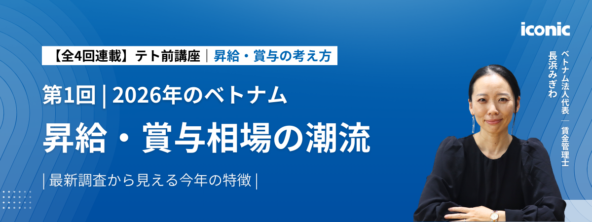 第1回目となる今回は、その前提として、ICONICが1月6日に発刊した最新版「2026年版ベトナム昇給・賞与レポート(詳細版)」をもとに、2026年に向けたベトナム市場の昇給・賞与を取り巻く潮流の中から、今年ならではの特徴をいくつかピックアップしてご紹介します。