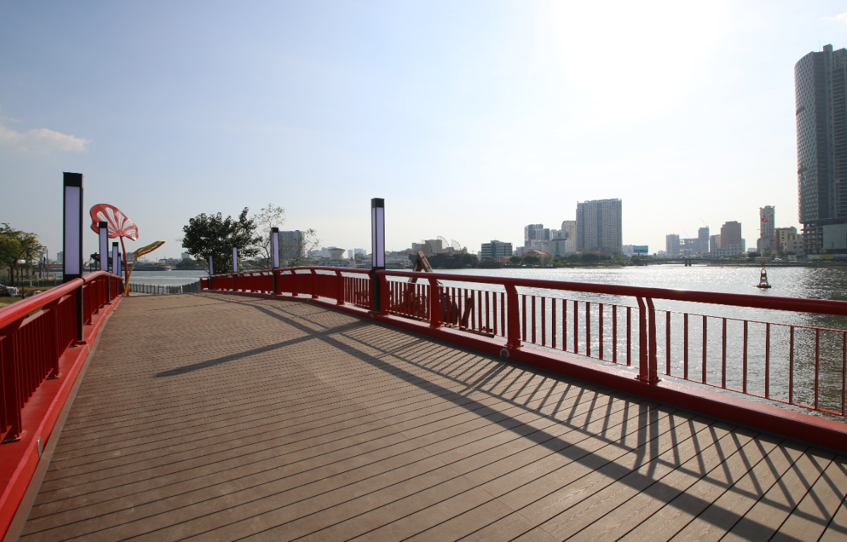 こちらは、前述したサイゴンリバーフロントパークの敷地内にある橋です。2024年のテト前に完成しました。ユニークなデザインのこの橋はこの地域のシンボルとなっています。