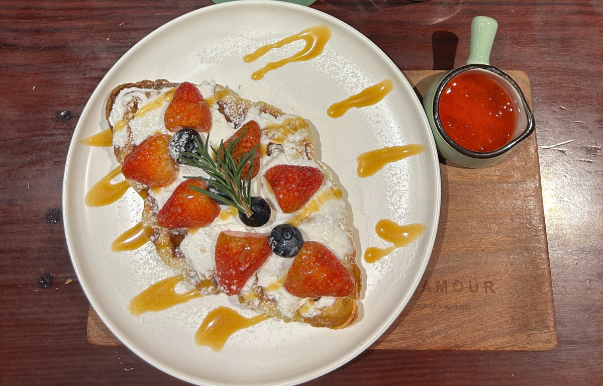 こちらは、このカフェの定番メニューであるクロッフル。クロッフルとはクロワッサンをワッフルメーカーで焼いたスイーツのこと。