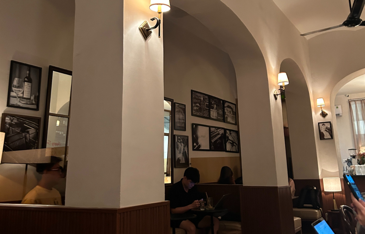 今回は、最も口コミ数の多いHồ Tùng Mậu店にモーニング利用で伺いました。観光客向けと思いきや、地元の人にもたくさん利用されている様子。店内は広々として、開放的なテラス席もあります。