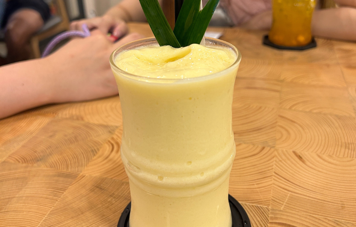 筆者は「Mango Smootihe」を注文しました。マンゴーのフルーティーさを残しつつ、ほんのりヨーグルトのような風味も感じられ、暑い日に飲みたいさっぱりした味わいでした。