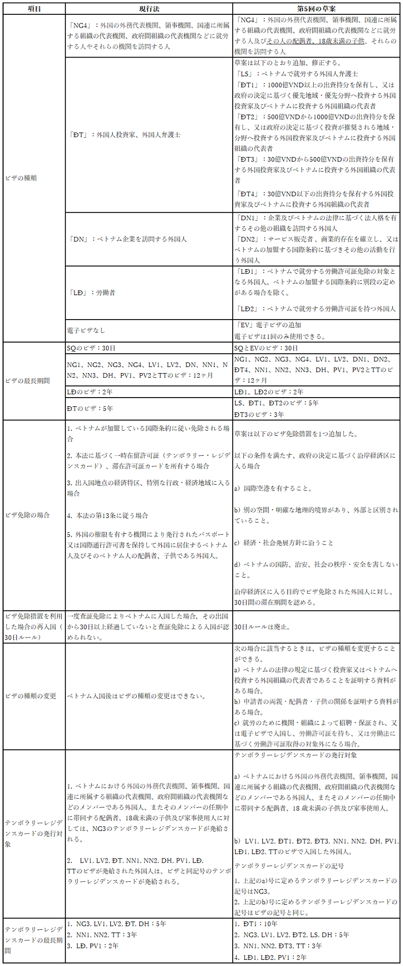 このほか、改正法では、電子ビザ発給に関する条項の新設や、ベトナムに投資する外国人投資家に交付されるテンポラリーレジデンスカードの最長期間が10年に延長されるなどの変更が加えられています。