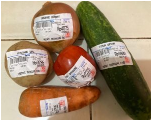 日本だとお野菜などは1パック〇〇円というのががほとんどですが、インドネシアはお肉お野菜はほとんどグラム売りなんですね。卵も。