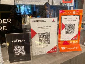 電子決済はもちろんの事、一番左↓↓↓の「OUR MENU」を読み取るとメニューのデーターがスマホで見れるという代物。