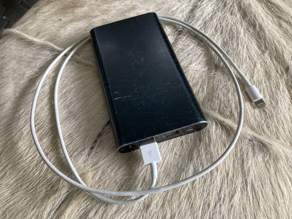 突然充電が切れても大丈夫なように、パワーバンクは常備していると安心です。ケーブルも忘れずに。