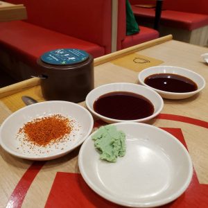 マヨネーズがたっぷり乗ったカリフォルニア巻き寿司系が人気だったり、わさびだけでなく唐辛子も山盛りでサーブされており、「インドネシアだなー」と感じます。