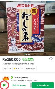 左下(画像↑↑)の吹き出しマークでお店に在庫など問い合わせ、質問事項もあればここのメッセージでやり取りします。