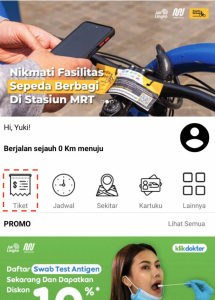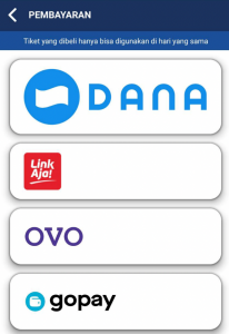 - トップ画面の「Tiket」から、乗車駅(Dari)と降車駅(Menuju)の駅名を指定すれば、金額が表示され、支払い、チケット購入完了
