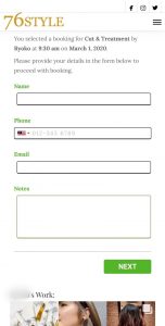 (5)スタイリストを選んだら、当日受けたいメニューを選び「NEXT」をクリックします。