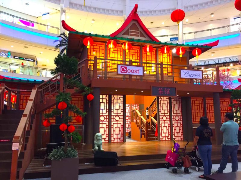 ショッピングモール「the Curve」では、ちょっとレトロな茶館(Tea House)が登場。期間中イベントとして、ミュージカルの上演やライオンダンスなどが予定されているそうです。周辺にもストール(屋台)などが出現し、小さなテーマパークのようにも見えます。