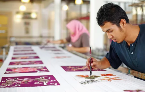 バティックとは、マレーシアやインドネシアの伝統工芸である「ろうけつ染め」です。