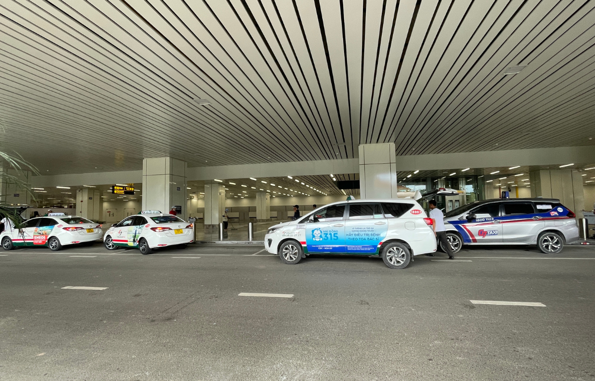 このフロアには、空港タクシーとしてよく見かけるVINASUN(ビナサン)やMai Linh(マイリン)の車両が複数停車しており、乗降が行われていました。
