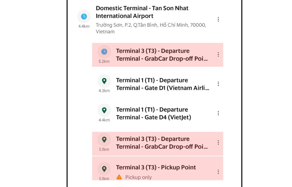 2025年5月現在、Grabアプリでは、目的地として「T3(Terminal 3)」がすでに選択肢として登録されており、スムーズに呼び出しが可能となっています。