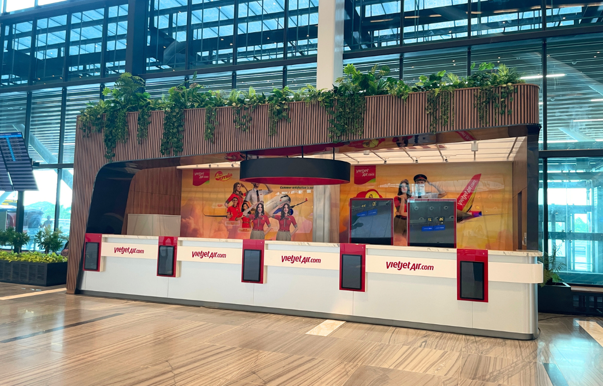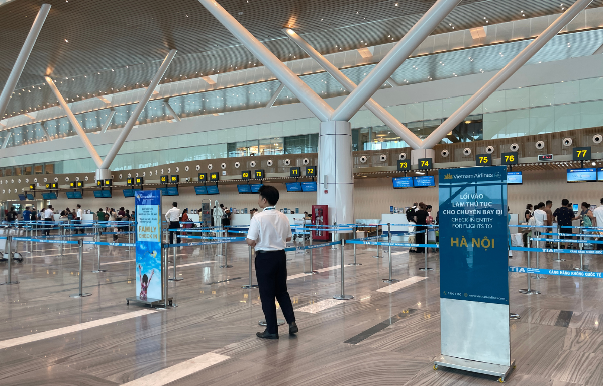 取材時点(5月23日)では、稼働しているのはベトナム航空のみでしたが、案内表示にはすでにVietJet(ベトジェット)も表記されており、今後の受け入れ準備が進んでいる様子がうかがえました。