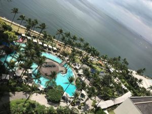 ソフィテル・マニラでは、すべてのお部屋がオーシャンビューではなく、オーシャンビューとシティービューのどちらかになります。わたしは海の見えないシティに住んでいるのでオーシャンビューを選び、電話で予約する際にリクエストしておきました。日本から旅行でいらっしゃる方なら、マニラの夜景が一望できるシティービューもオススメです。