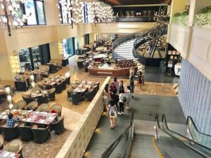 ソフィテル・マニラのエントランスに螺旋階段を降りると見えてくる巨大なビュッフェレストラン「スパイラル」。フィリピンでもっとも素晴らしいビュッフェのひとつと言われています。客室を利用しなくても、スパイラルで食事をするために訪れる人も大勢います。