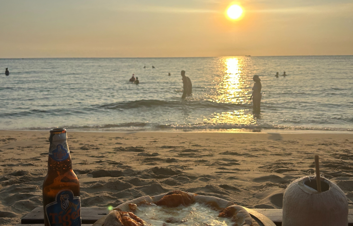 こちらは、フーコック島で最も人気と言われているビーチバー「OCSEN Beach Bar & Club」。ビーチに並べられたオレンジのソファに座って、お酒や軽食を楽しみながら夕日が見られるスポットです。