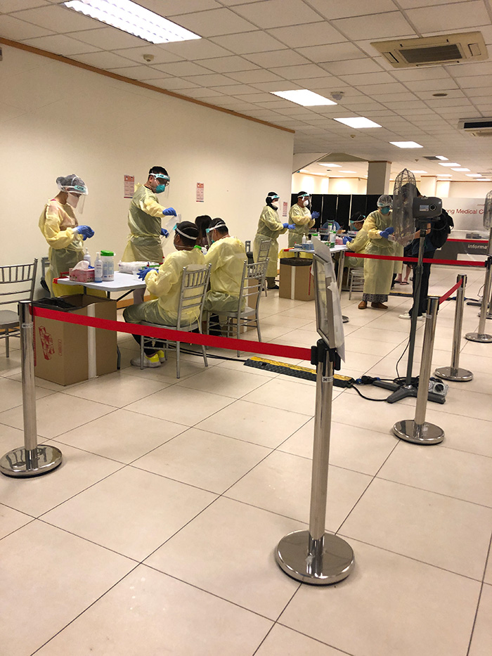 日本がちょうど、Go Toトラベルキャンペーンが開始する直前の7月17日に渡航し、想定通り機内の中はガラガラで貸し切り状態でした。無事入国すると、空港の入国審査ロビーでは、簡易なデスク1つに入国管理スタッフ2人ほどが間をあけて座り、入国証の確認と、Stay-Home Noticeと呼ばれる2週間の隔離施設の手配の対応をしておりました。