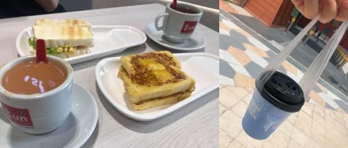 価格もティーとパンで3-5ドル(240-400円)程度と非常にお手頃です。ティーはシンガポール独自のハンドビニールでお持ち帰り(Take away)もできます!いつ見てもバランス悪そうですが、かなり丈夫にできています。これこそ、シンガポールの現地の名物と言えるかもしれません。