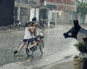 「Đừng tắm mưa nhé con!(外出て雨に当たらないでよ!)」と、雨の日のお母さんの注意とは裏腹に、ここぞとばかりに子供たちは道路に飛び出し、びしょぬれになりながら友達と遊んでいる姿を多く見かけます。ベトナム人の子供の頃の思い出のひとつと言えば「雨を浴びる」事だそうです。濡れるために外に出るやんちゃな子どもたちは、田舎でも都会でもベトナムでよく見られる光景です。