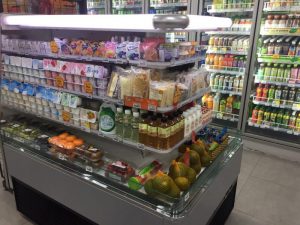 レジ横には作りたてバインミーや肉まん(日本とはちょっと違う)、ピザ等のホットスナックも置いてありますし、ドリンクも充実しています。