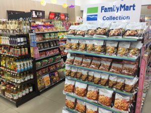 ファミリーマートブランドのお菓子や、日本からの輸入菓子もたくさん!久原の商品もあります。