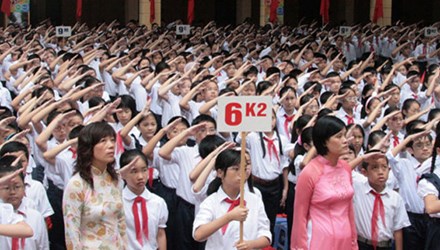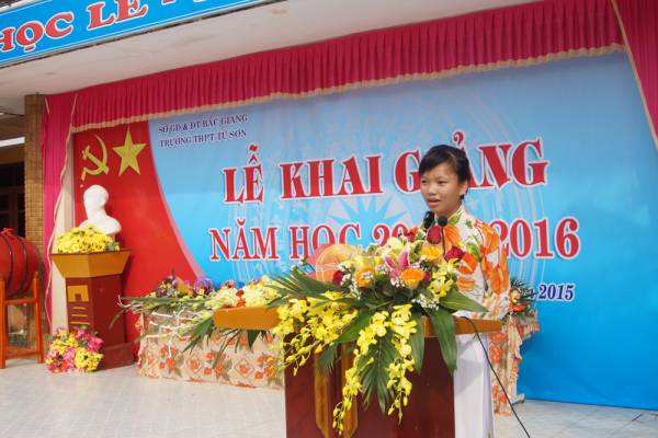 学校の代表者はこの日に出席したVIPを紹介し、その後にホーチミン大統領の手紙と新学期開始のスピーチを読みます。学生の代表者は、学生の考えと名誉の約束を発表します。