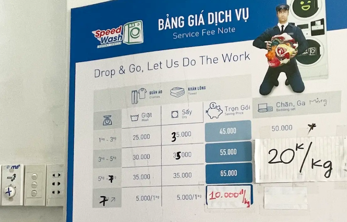 ・洗濯+乾燥(1〜3kg)…35,000VND(約190円)