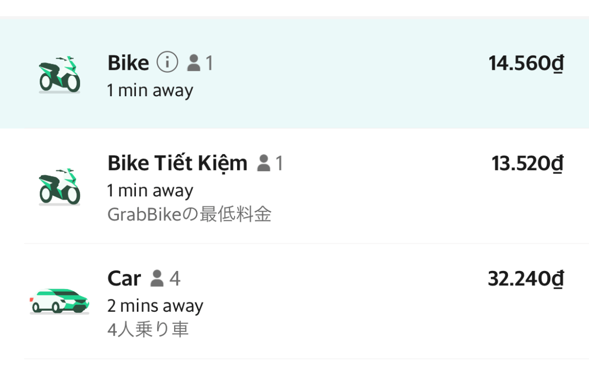 関連記事:【写真付き解説】ベトナムで必須のGrab(グラブ)の使い方