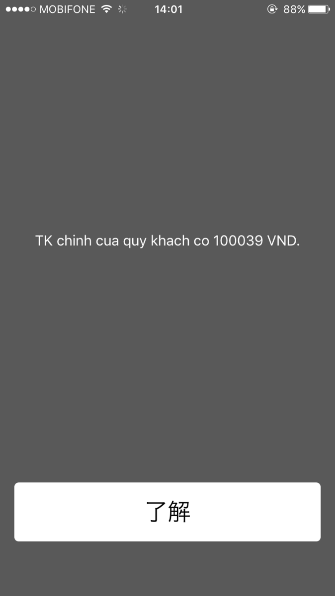 「*101#」を入力して発信すると、以下のようなメッセージが表示されます。