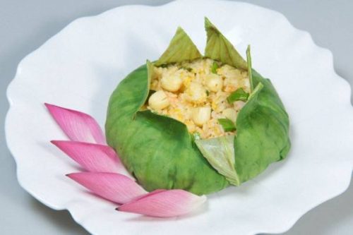 新鮮な蓮の葉は、おこわやチャーハンを包むのに使われます。蓮の葉で包むと、食べ物の味・香り・食感が閉じ込められて、より一層美味しくなります。