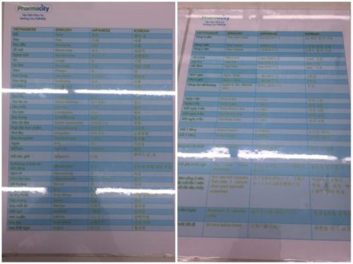 この表にはベトナム語、英語、日本語、韓国語で様々な症状が書かれています。とても便利ですね。