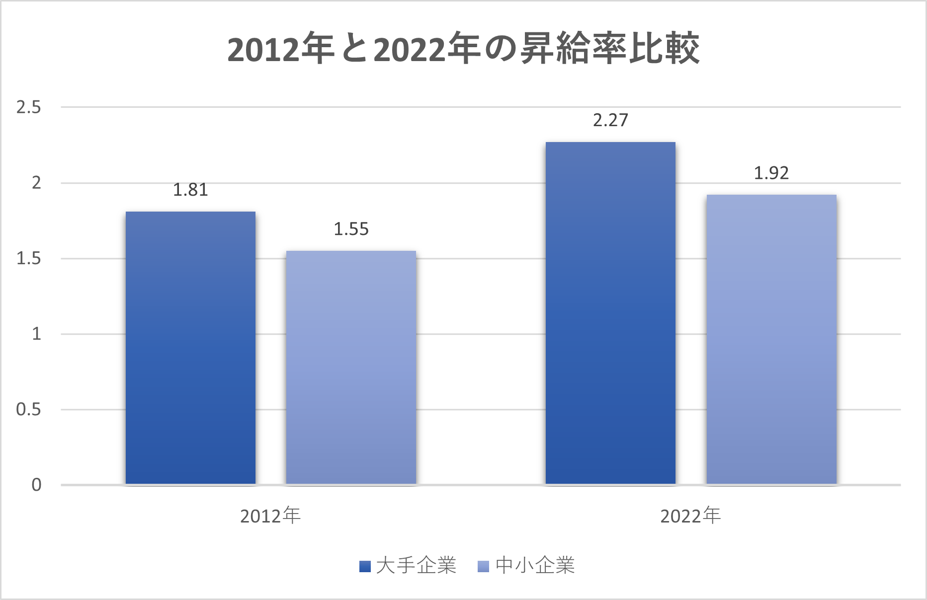 2022年の大手企業の昇給率は2.27%、中小企業は1.92%でした。※2