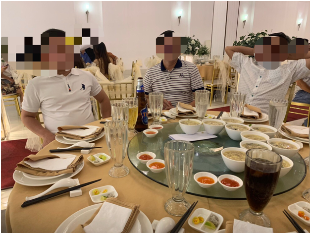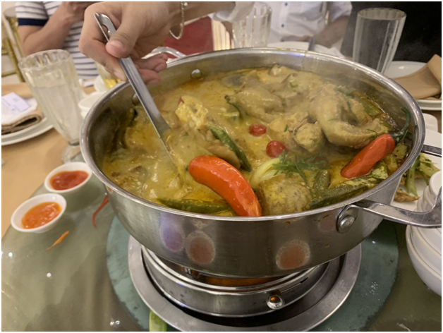 食事は、基本的にはベトナム料理が中心で、スープから始まり鍋料理、炒めものが次々と出てきます。料理はどれも美味しくて、会場スタッフが取り分けてくれます。