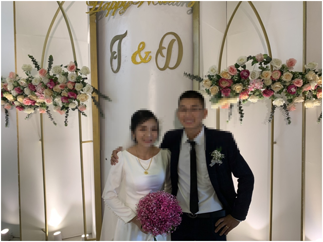 新郎新婦は同じ地元の友人同士。まずは地元で結婚式を挙げました。改めて友人や仕事の関係者を招いてホーチミン市で披露宴(パーティー)を行いました。