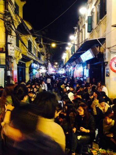 (観光客にも人気のハノイの旧市街。夜は人で溢れています)